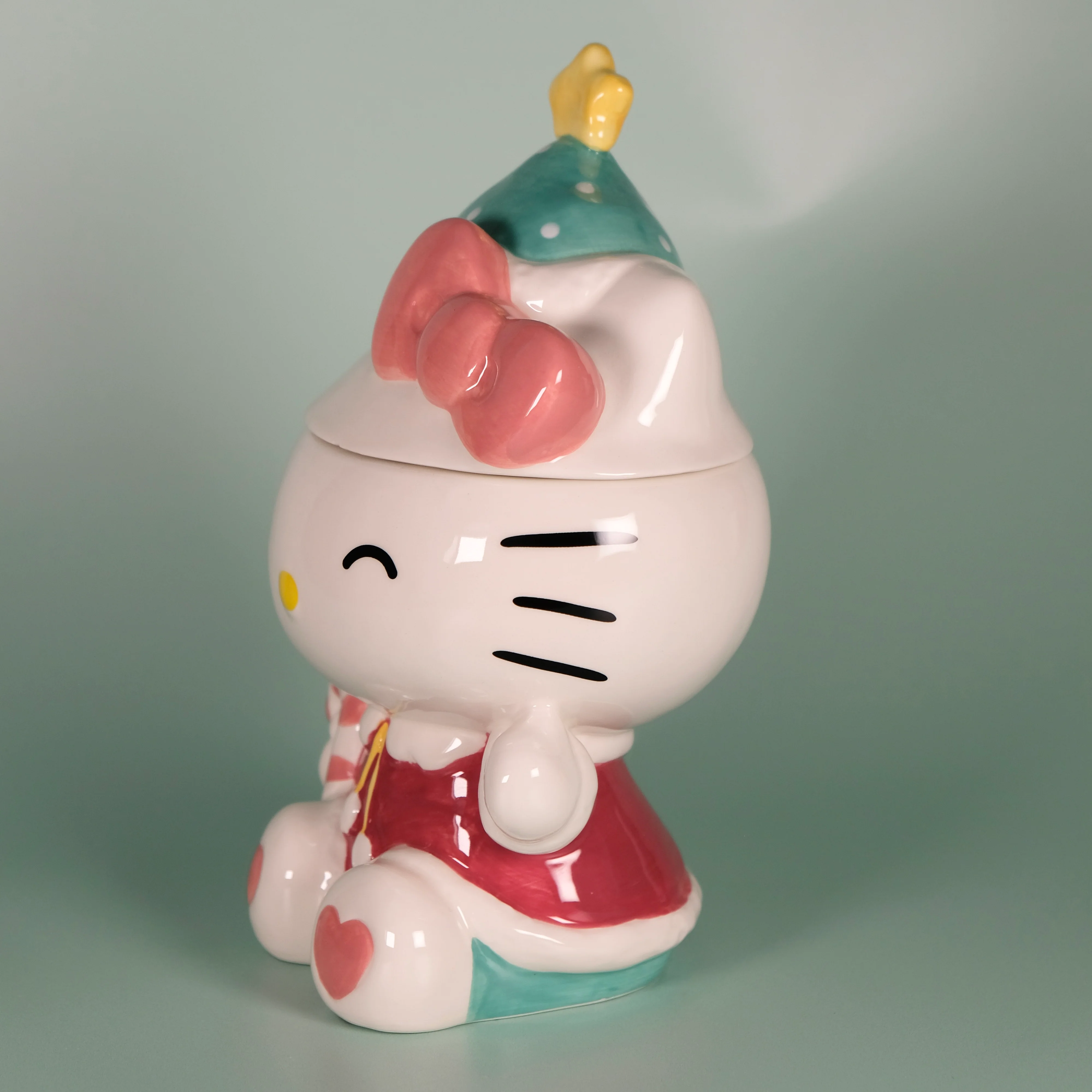 🌟 Bring Hello Kitty Holiday Candy Cane Cookie Jar charm into your home! This hand-sculpted, hand-painted Hello Kitty Holiday Candy Cane Cookie Jar is a delightful addition to any collection, showcasing intricate craftsmanship and adorable details. Whether you're a lifelong Hello Kitty fan or just starting your journey, this collectible brings nostalgia and joy into everyday life. 🎀